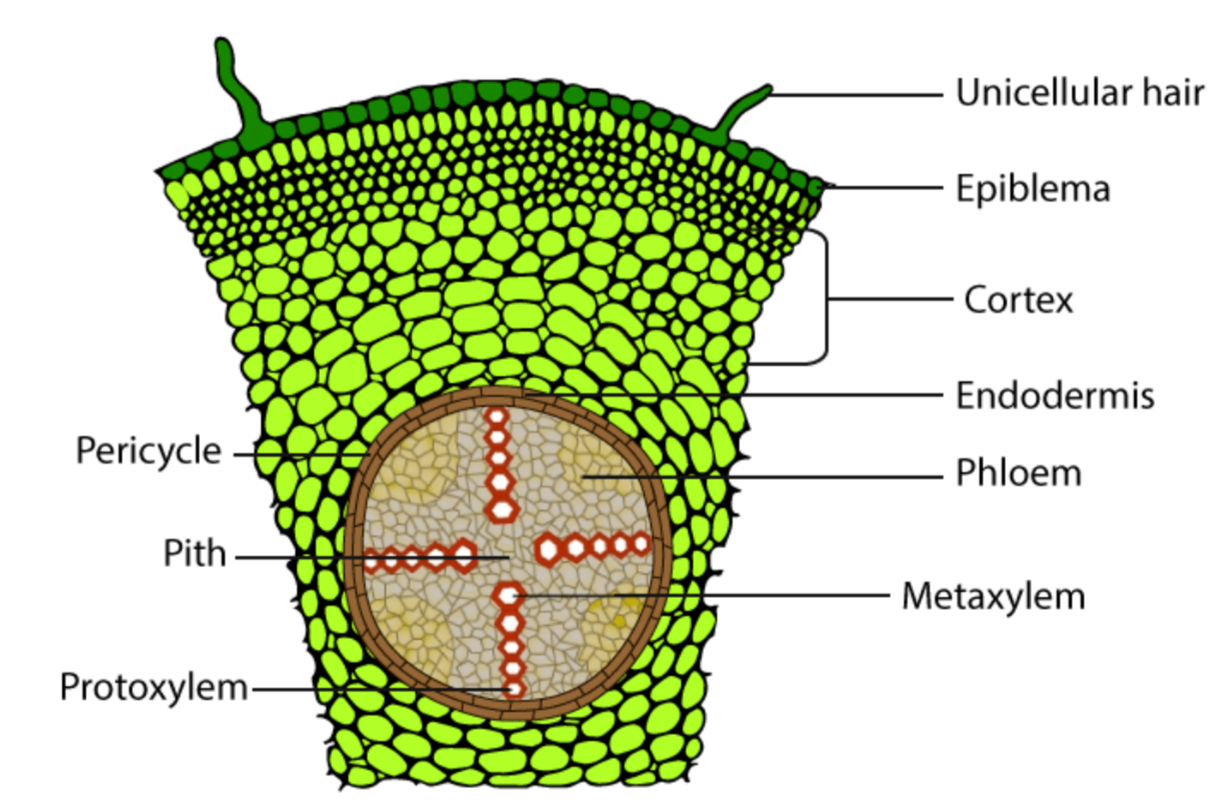 - Develops from elongation of radicle