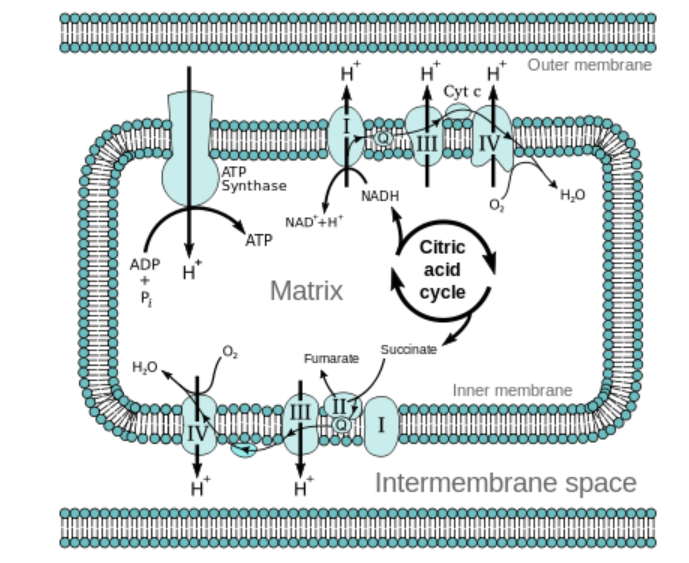- Electron Transport Chain (ETC) & Oxidative Phosphorylation (inner mitochondrial membrane)