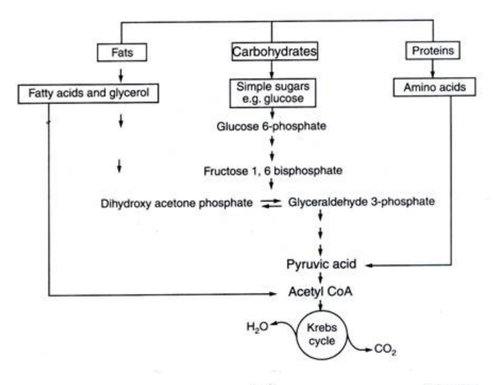 | Krebs Cycle | Releases CO2, generates NADH/FADH2 | Citrate, α-Ketoglutarate, Oxaloacetate → precursors for biomolecules |