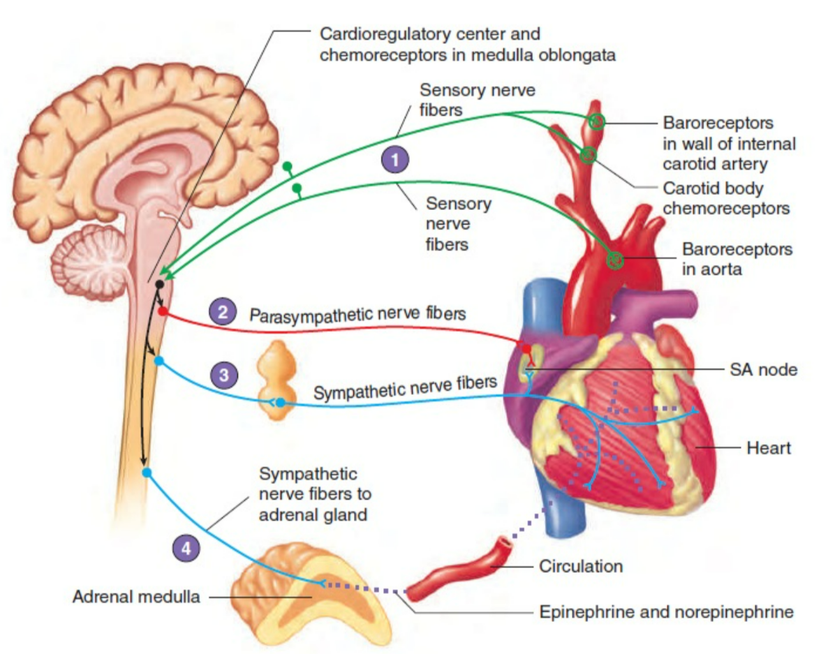 Chemoreceptor Reflex → O₂/CO₂/pH feedback → HR adjustment