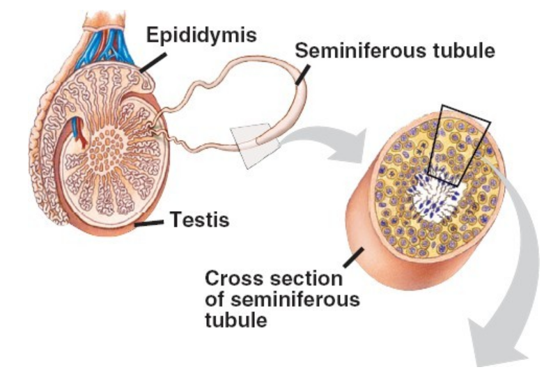 - Structure: Coiled tubes (~30–70 cm each), lined with germinal epithelium.