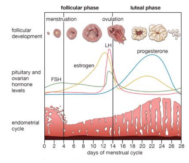 Hormonal regulation: ↑ Estrogen, ↓ Progesterone → uterus ready
