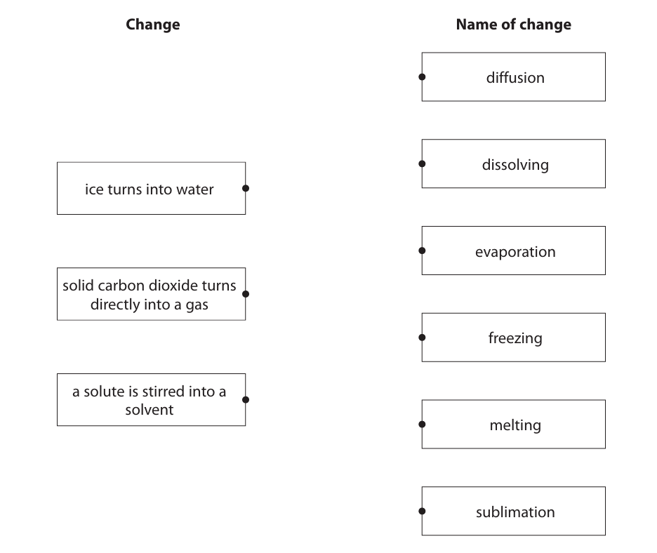 Draw one straight line from each change to its correct name.