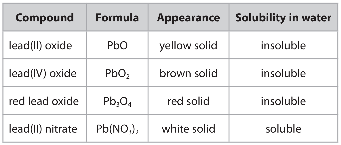 The table gives information about some lead compounds.