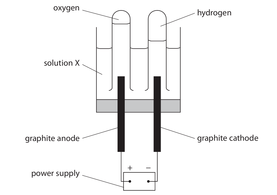 (a) The student knows that the products of the electrolysis of dilute sulfuric acid are hydrogen and oxygen. She carries out the electrolysis using this apparatus.