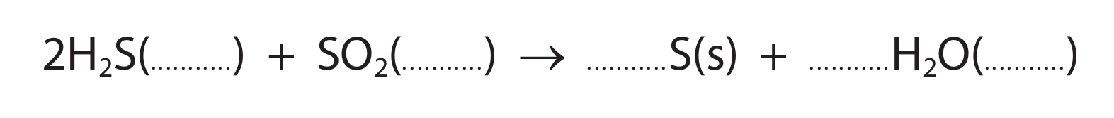 (a)(i) \(2H_2S(g) + SO_2(g) \rightarrow 3S(s) + 2H_2O(l)\)