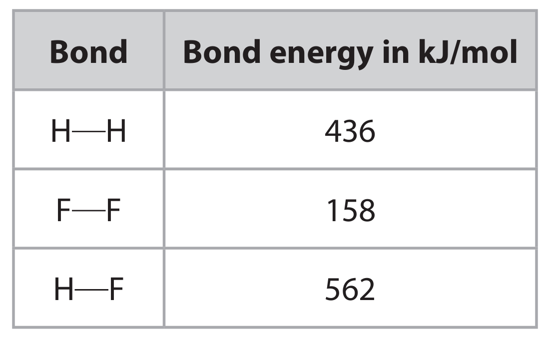 Bonds Broken (Endothermic): 1 H—H + 1 F—F = 436 + 158 = 594 kJ/mol