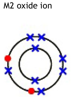 (b) The diagram shows the electronic configuration of a potassium atom and an oxygen atom.