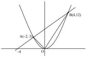 4. If the line \( 3x – 2y + 12 = 0 \) intersects the parabola \( 4y = 3x^2 \) at the points A and B, then at the vertex of the parabola, the line segment AB subtends an angle equal to