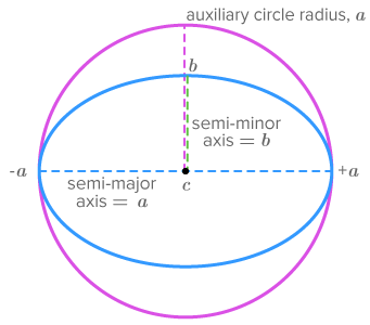 The auxiliary circle is used to relate circular angles to ellipse points.