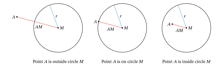 Since \( S_1 < 0 \), point lies inside the circle.
