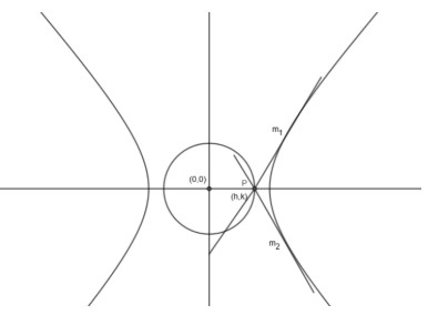 Using identity \( \sec^2\theta – \tan^2\theta = 1 \), RHS becomes 0. Thus the pair reduces to a double tangent → i.e., the tangent at parameter \(\theta_1\), which makes sense (point lies on hyperbola).