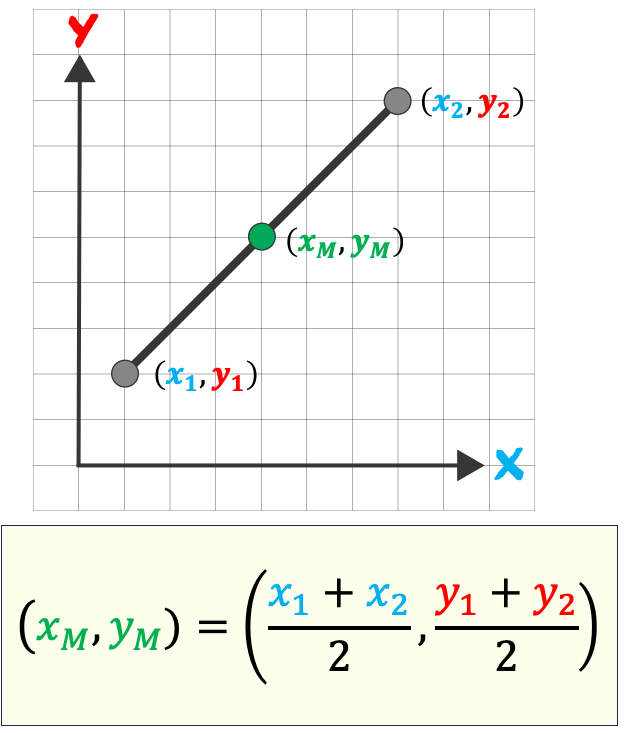 If a point \( M \) divides line segment joining \( A(x_1, y_1) \) and \( B(x_2, y_2) \) in the middle, then:
