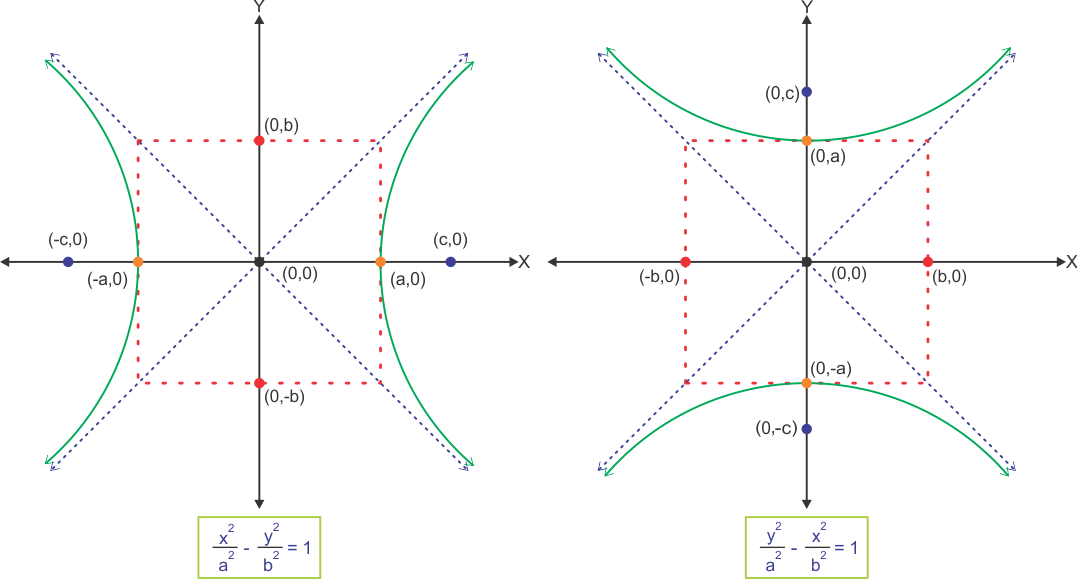 \( \dfrac{x^2}{a^2} – \dfrac{y^2}{b^2} = 1 \)