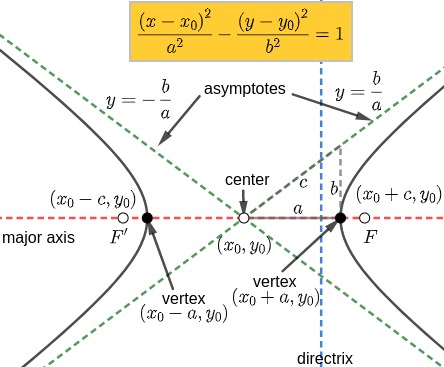 \( \dfrac{(x-h)^2}{a^2}-\dfrac{(y-k)^2}{b^2}=1 \)