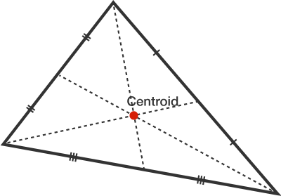- The centroid is simply the average of the coordinates of the three vertices.
