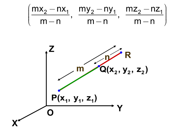 \( P\left( \dfrac{m x_2 – n x_1}{m-n},\; \dfrac{m y_2 – n y_1}{m-n},\; \dfrac{m z_2 – n z_1}{m-n} \right) \)