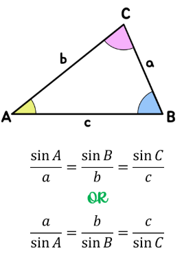 \( \dfrac{a}{\sin A} = \dfrac{b}{\sin B} = \dfrac{c}{\sin C} = 2R \)