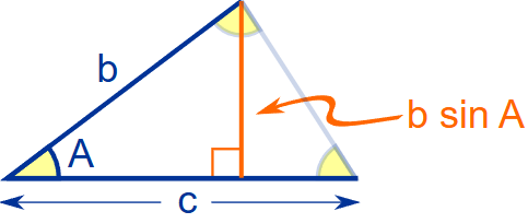 Area \( = \dfrac{1}{2} bc\sin A = \dfrac{1}{2} ca\sin B = \dfrac{1}{2} ab\sin C \)