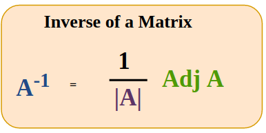 \( A^{-1} = \dfrac{1}{|A|} \text{adj}(A) \)