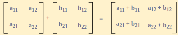 Let \( A = [a_{ij}]_{m \times n} \) and \( B = [b_{ij}]_{m \times n} \). Then their sum is defined as: