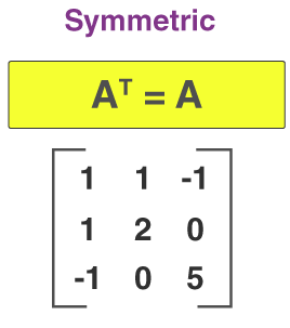 - Symmetric Matrix: \( A^T = A \)