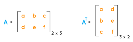 Example: If \( A = \begin{bmatrix}1 & 2 & 3\\4 & 5 & 6\end{bmatrix} \), then