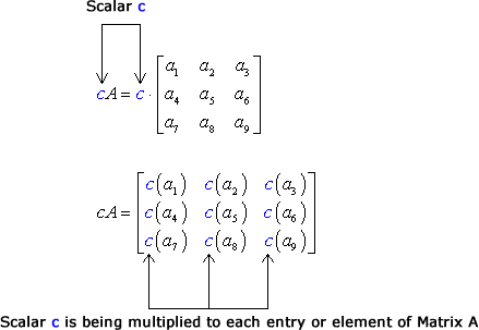 If \( A = [a_{ij}]_{m \times n} \) and \( k \) is a real (or complex) number, then the scalar multiple of \( A \) is defined as: