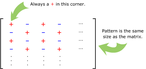 The signs of the cofactors for a 3 × 3 determinant are arranged as follows: