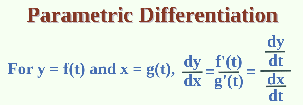 - Then take the ratio \( \dfrac{dy}{dx} = \dfrac{dy/dt}{dx/dt} \).