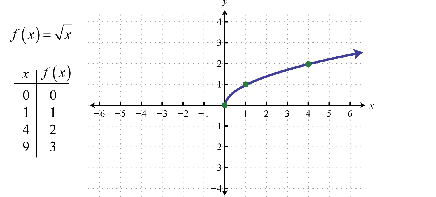 | \( f(x) = \sqrt{x} \) | \( [0, \infty) \) | \( [0, \infty) \) |