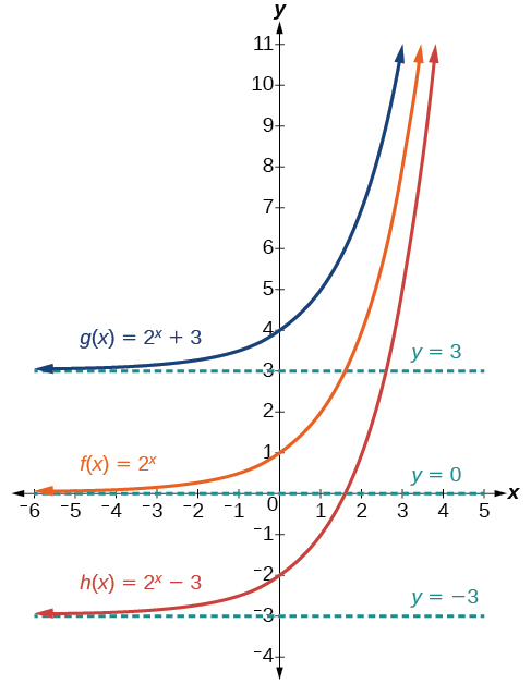Examples: \( f(x) = 2^x, \, e^x, \, 10^x \)