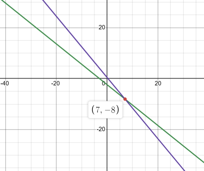 The \(y\)-intercept of option B is \(\dfrac{\dfrac{-21}{4}}{\dfrac{-21}{4}}=1\)