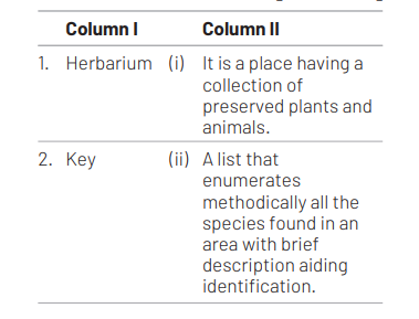 Match the items given in Column I with those in Column II and select the correct option given below [NEET 2018]