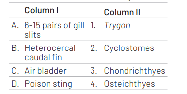 Match the following columns and select the correct option from the codes given belows. [NEET (Oct.) 2020]