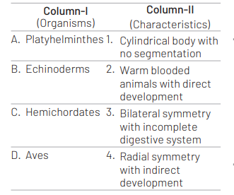 Match the following (Columns) group of organisms with their respective distinctive characteristics and select the correct option from the codes given belows [NEET (Oct.) 2020]
