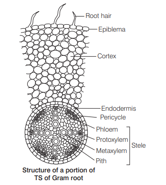 Cortex is found below epiblema. It is made up of thin-walled parenchymal cells. Epidermis is the outermost layer made up of thin-walled flattened and slightly elongated parenchymal cells. Pericycle is found below endodermis and it is made of parenchymatous cells.