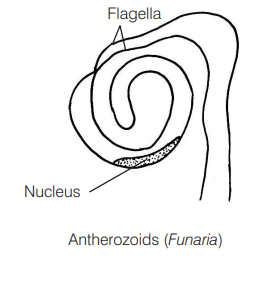 The antherozoids of Funaria are spirally coiled and bear two equal flagella at anterior end.