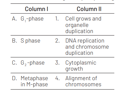 Match the following (Columns) events that occur in their respective phases of cell cycle and select the correct option from the codes given below. [NEET (Oct.) 2020]