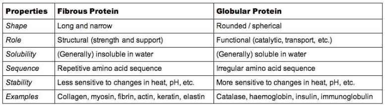 - Proteins are commonly described as either being fibrous or globular in nature.