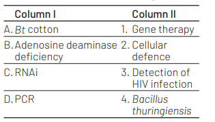 Match the following columns and select the correct option. [NEET (Sep.) 2020]