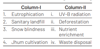 burried in the pits dug on the ground and later they get covered by sail. Snaw blindness is caused due to UV-B radiations exposure. These radiations can reach the earth surface due to the depletion of azane layer. In Jhum cultivation, land is cultivated tempararily and then abandoned so that, it can revert to its natural vegetation. It is a long term process and usually leads to defarestation.