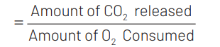 Respiratory Quotient $(\mathrm{RO})$ is the ratio of volume of $\mathrm{CO}_2$ evolved to the volume of oxygen consumed per unit time per unit weight. Therefore, $\mathrm{RQ}=\mathrm{CO}_2 \mathrm{~N}_2$. It is useful in knowing the type of respiration, major transformations and respiratory substrate.