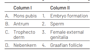 Match column I with column II and select the correct option using the codes given below. [NEET 2016, Phase II]