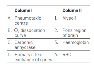 Match the following columns and select the correct option from the codes given below. [NEET (Oct.) 2020]