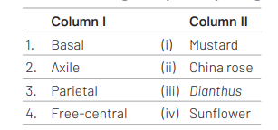 The plant Dianthus has free-central placentation in its ovary. Ovules are attached on the main axis of the placenta.