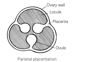 Parietal placentation occurs in bicarpellary to polycarpellary syncarpous pistils in which the ovary is unilocular. The placentae are formed along the fused margins of the carpels