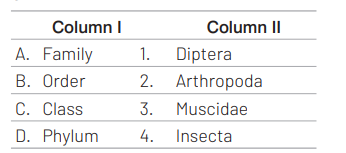 Match column I with column II for housefly classification and select the correct option using the codes given below: [NEET 2016, Phase II]