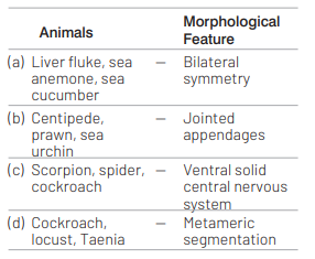Short Trick The question can be easily solved via elimination technique as (D) phylum is given with (2) Arthropoda combination in only option (a). This easily eliminates other options as correct answer. Thus, saves your time too.
