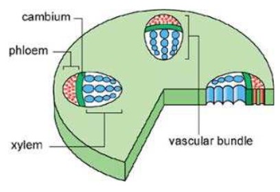 - Cambium layer – undifferentiated cells which can become xylem or phloem